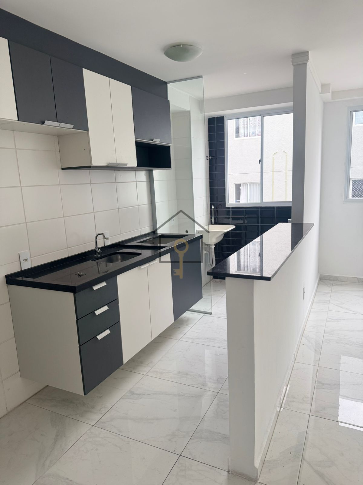 Com 02 dormitórios, sala ampla com 02 ambientes e piso porcelanato, banheiro com box blindex, cozinha com armários planejados e uma confortável área de serviço.